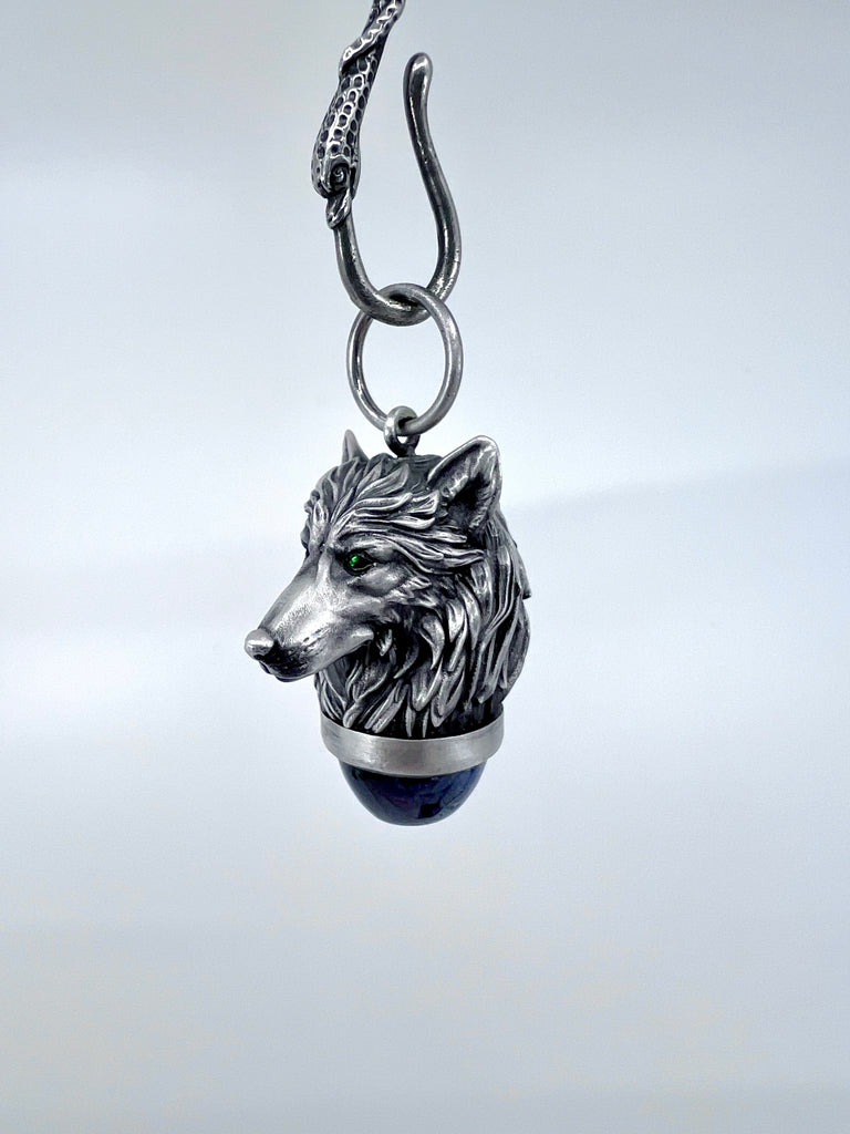 Blue Sapphire Wolf Cub Pendant and Bag Charm