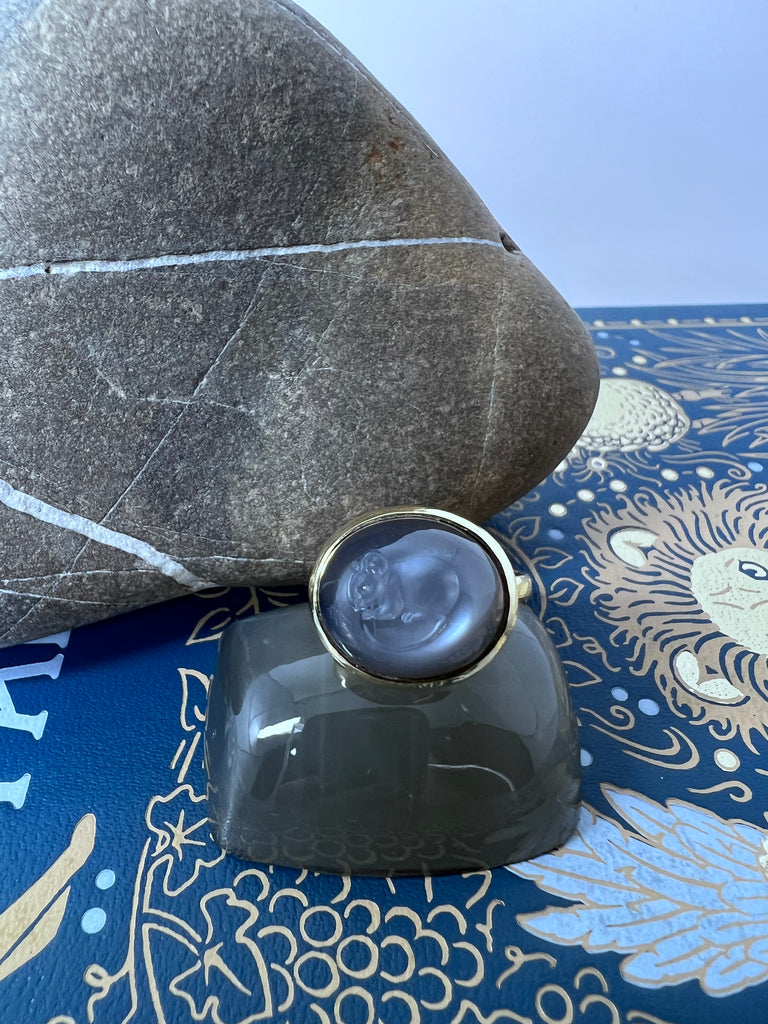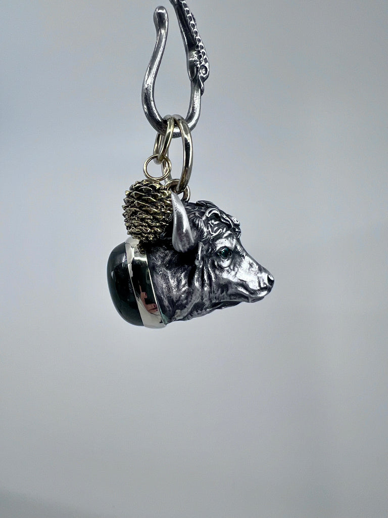 Small Goat Pendant with Flower Carved Gel Silica Chrysocolla